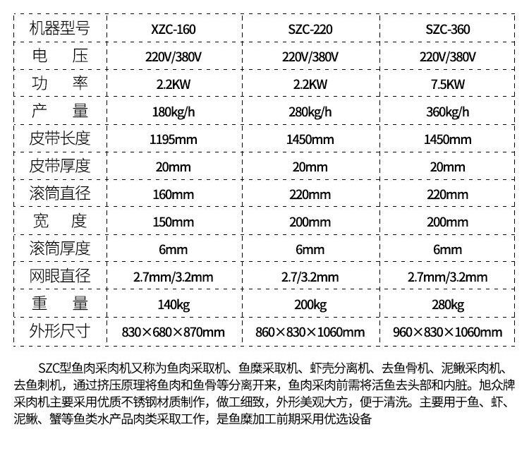 名稱魚肉采肉機(jī) 電源 功率 產(chǎn)量 尺寸 重量 規(guī)格 其他